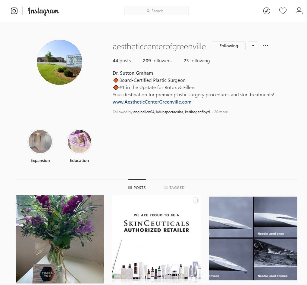 Our newest way to keep in touch with our patients, clients, and professional friends. Please follow us on Instagram, where we are known as Aesthetic Center Greenville. See some of the happenings at our office: gifts from happy patients, in-office special promotions, before and after results or our treatments, and useful info on products or procedures!